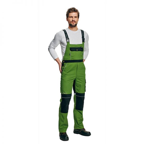 Çok dayanıklı rahat kalıplı iş tulumu • yansıtıcı aksesuarlar • diz pedi yerleştişebilmek için iki kat güçlendirilmiş dizler • metal fermuarlar ve çıt çıtlı yaka düğmeleri, çekiç takmak için spiral• küçük aletler için alt kenarda 4 adet spiral